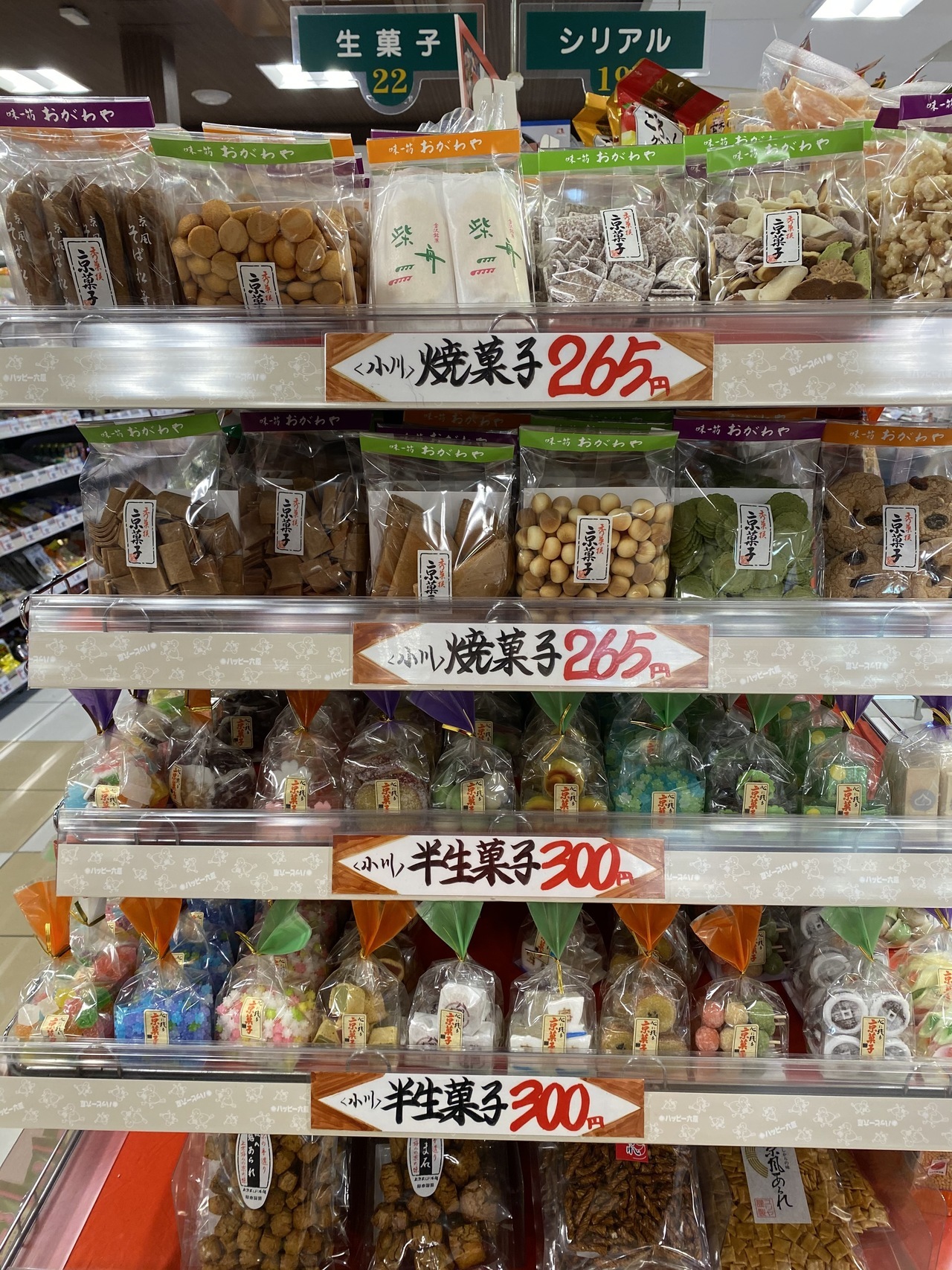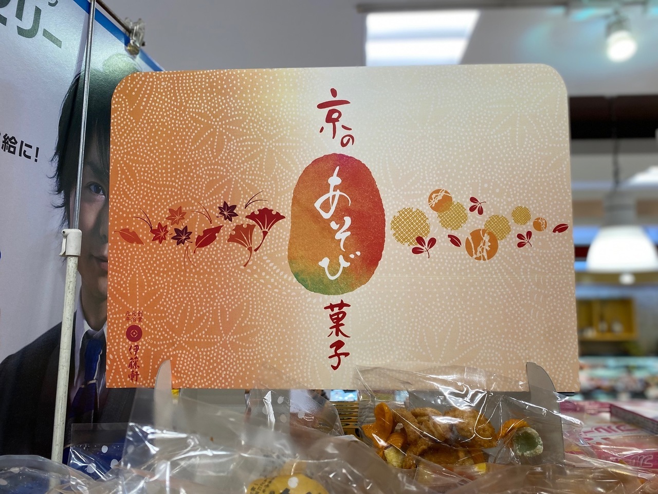 お菓子コーナーの特徴はやはり地域のお客様にあった品揃えを一番にかんがえております、大手菓子メーカーは勿論のことですが特に地元京都の老舗のお菓子もたくさん仕入れています